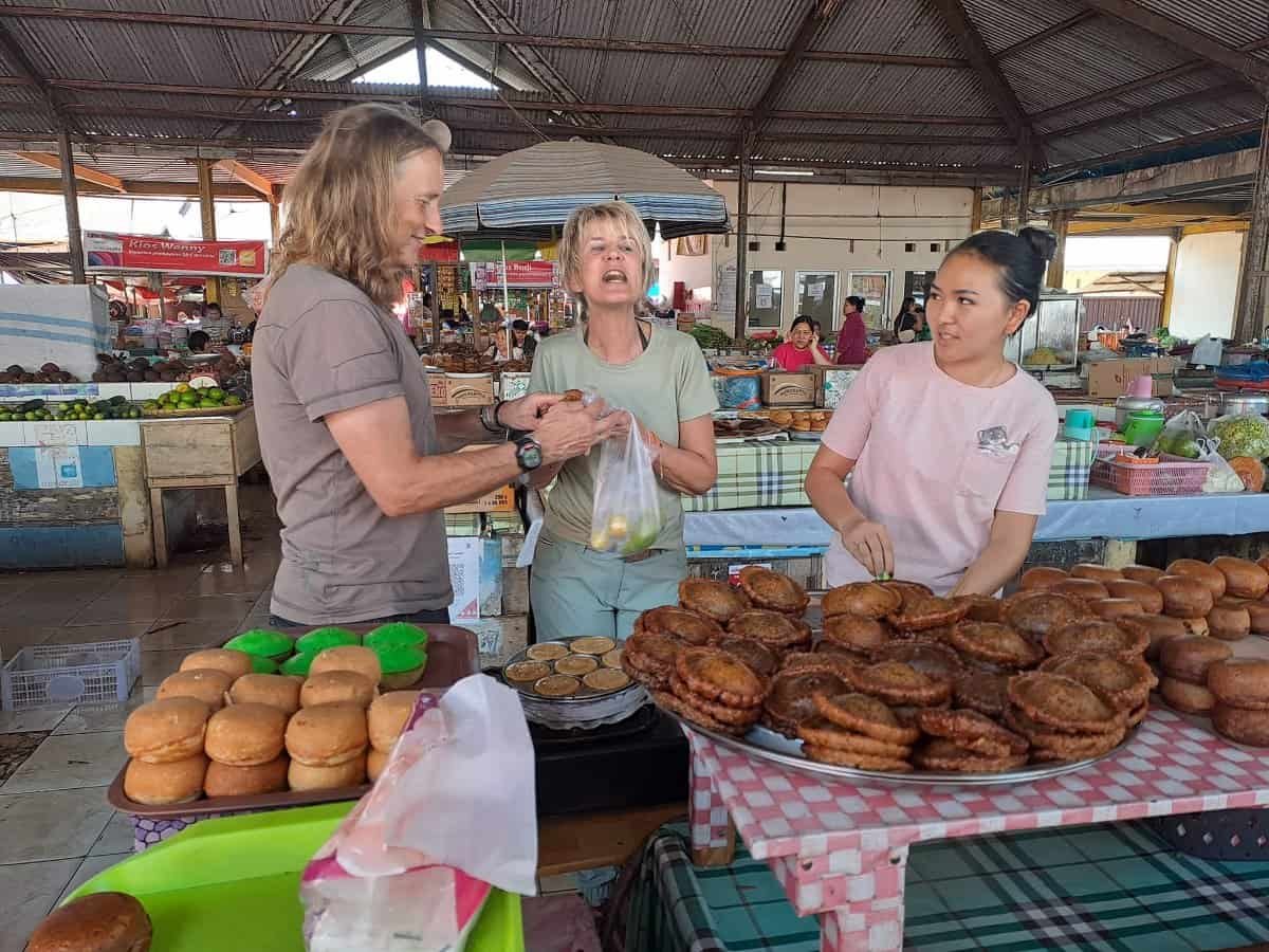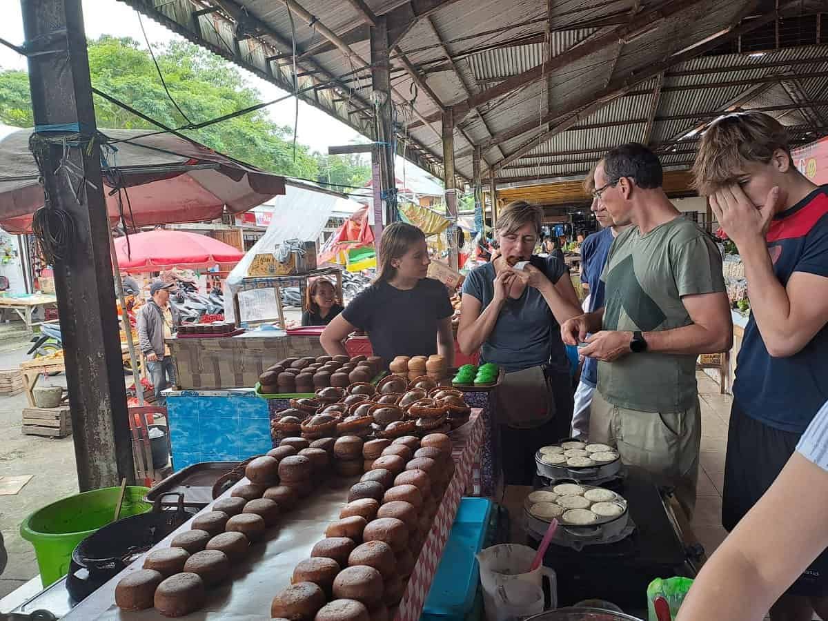 The large fresh market in Tomohon is a good stop on any tour of the North Sulawesi highlands. The market sells just about everything for the daily needs of the local people – and we do mean everything. The “meat” section is not for the faint of heart. You’ll most likely find beef, pork, chicken, snake, bat and dog on sale. Skip the meat section if you’d rather not see fresh roasted doggy. There’s plenty to see, like fresh fruits, vegetables, flowers and household items.