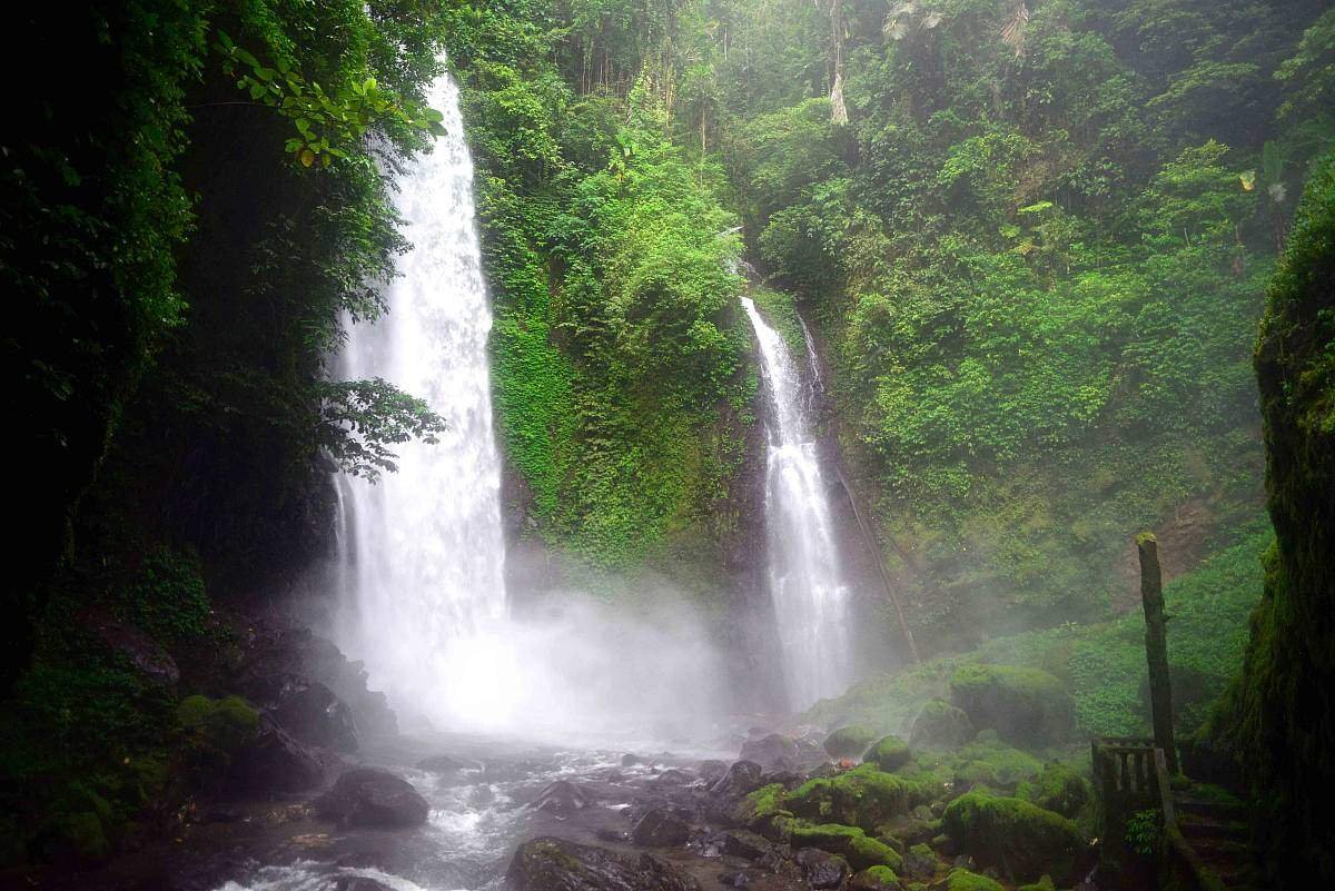 The beautiful Kali waterfall actually consists of two falls (plus a smaller one with a pool further uphill) and is only a scenic 1 hour jungle trek away (longer on the way back) from the resort. We suggest to wear sneakers or hiking boots as it can be quite slippery, and maybe bring a change of t-shirt and shorts as the force of the water is pretty intense, causing the mist to pretty much cover everything and everyone