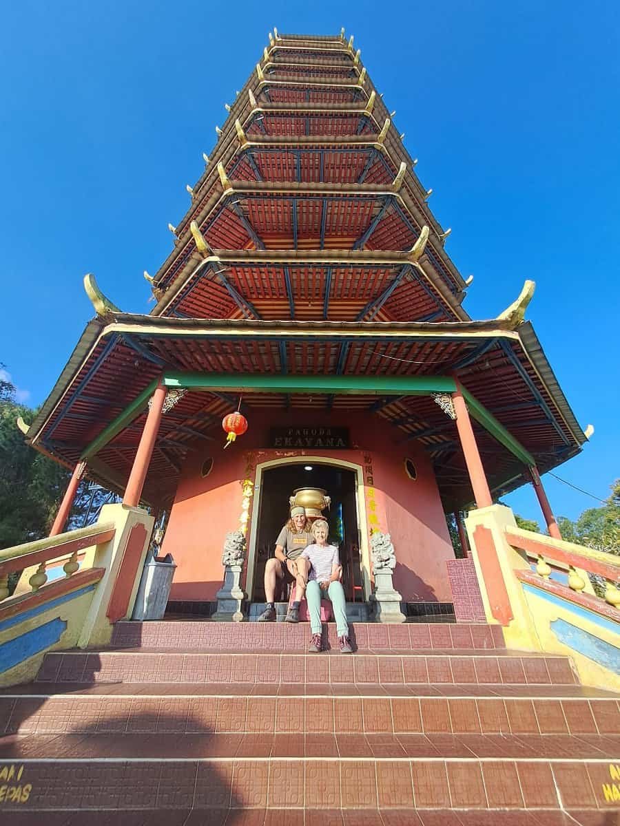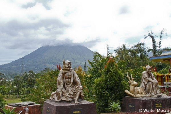 A rare place of worship for the Buddhist minority in predominantly Christian North Sulawesi that has become an attraction by the roadside in Desa Kakaskasen III in Tomohon. A row of what might be the world’s most imaginatively posed Buddha statues graces the entrance to the temple. There’s an 8-floor pagoda visitors can climb to see the lush fields surrounding the area and the beautiful interruption of Mt Lokon on the plain. Follow the pathways among the manicured garden and meet a humongous turtle monument and fountain.